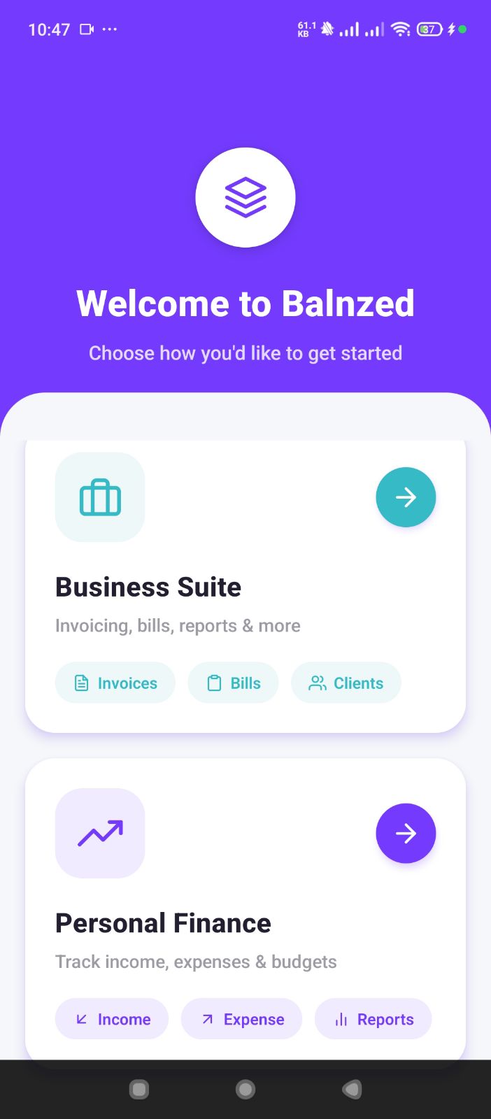 The Balnzed app isn't just a companion—it’s a fully functional accounting office that fits in your hand.
