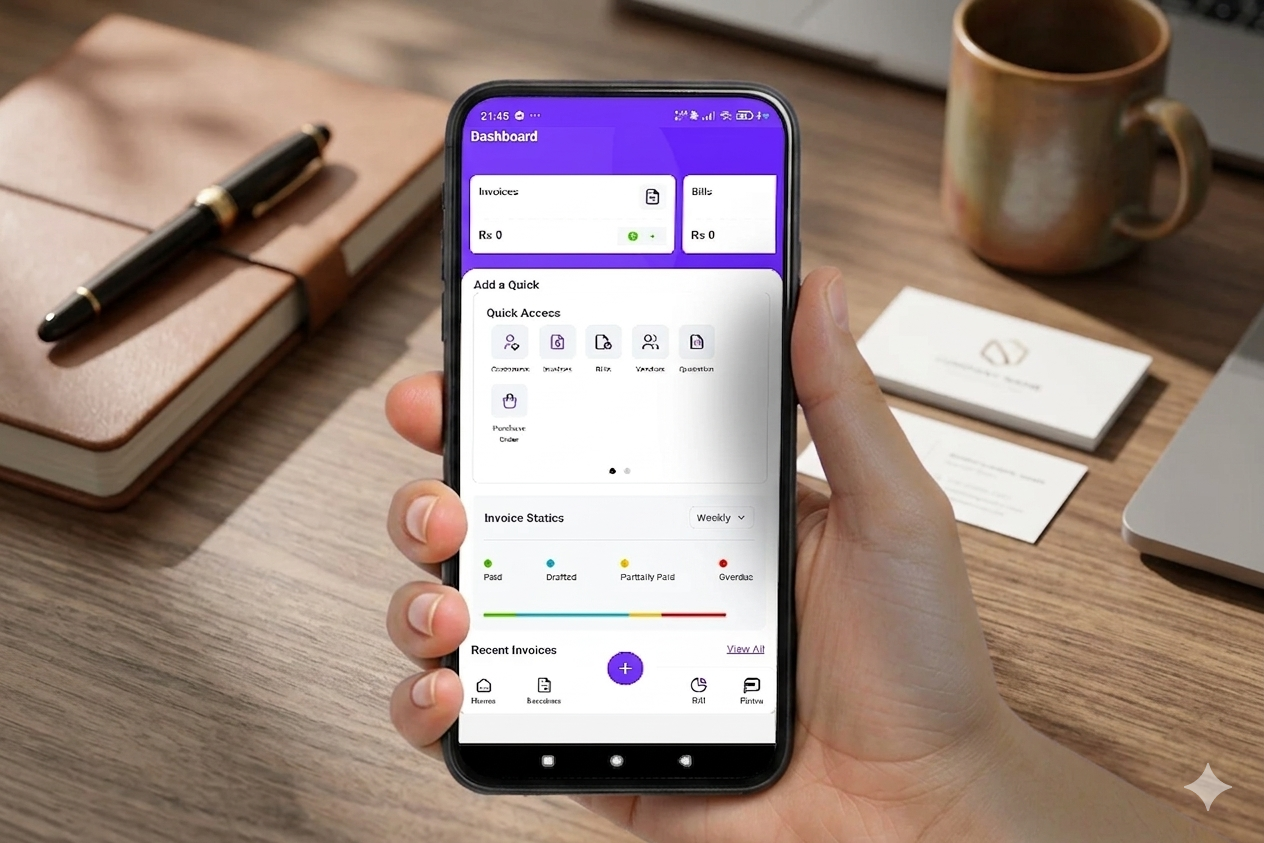 Create and send professional invoices in minutes. Share Invoices Via WhatsApp.